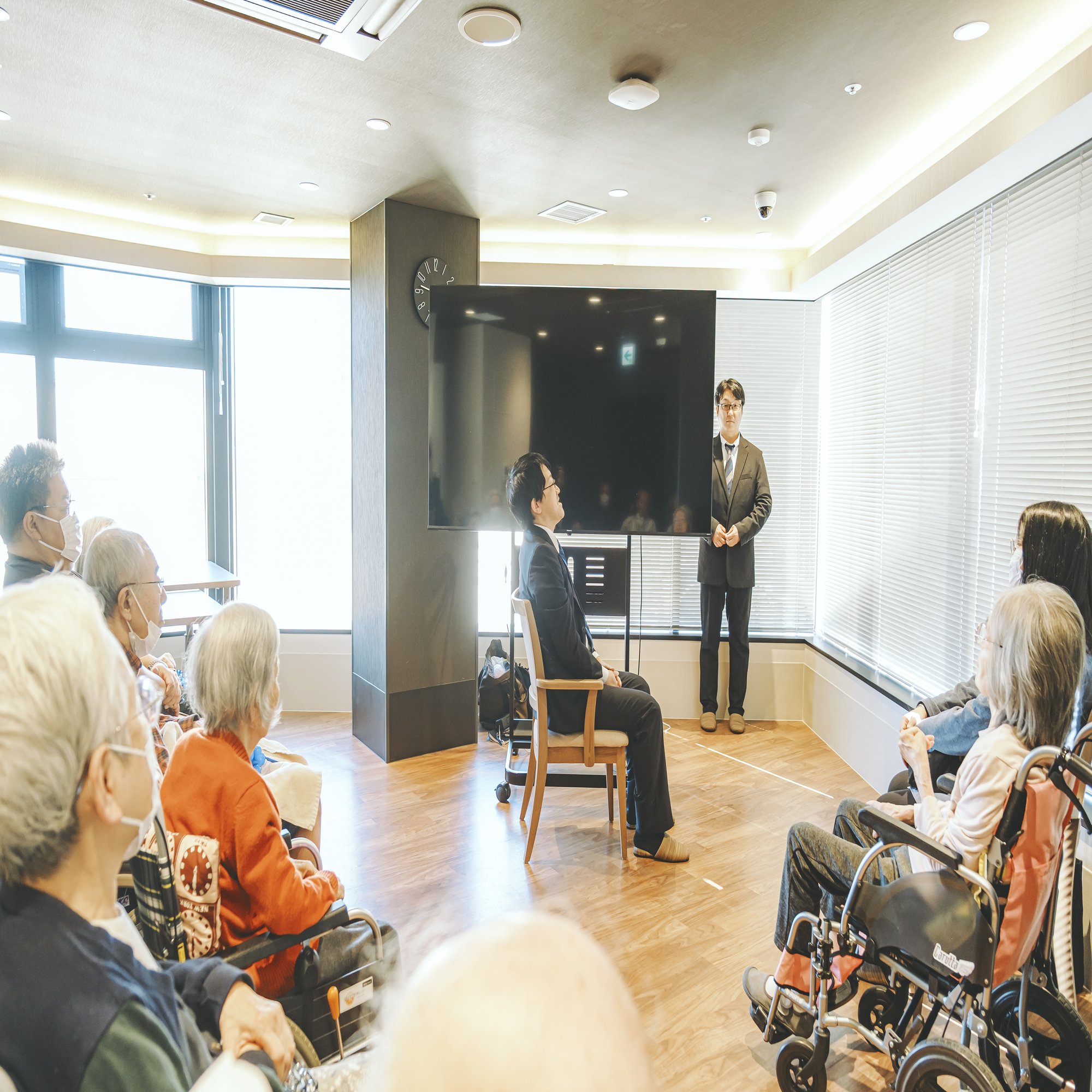 今回は、ご入居者の皆様にゆったりと楽しんでいただけるよう、30分ごとの2部制で実施。