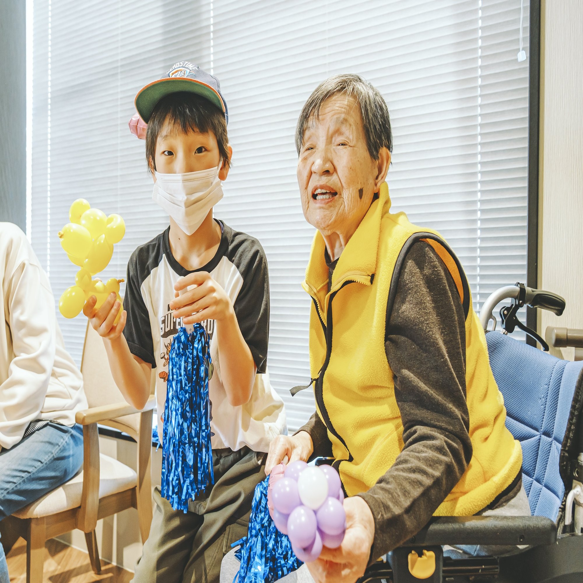 残った時間でナゾナゾクイズやバルーン作りを披露し、目の前で完成していくバルーンを、「お部屋のどこに飾ろうかしら〜」とパッと花が咲いたような笑顔で受け取られる皆さんの姿がとても印象的でした。